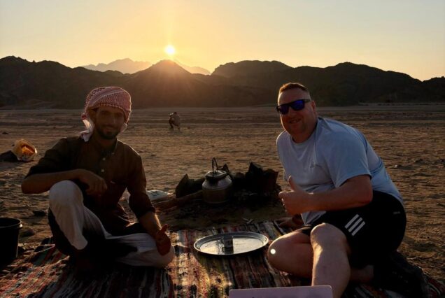 As the sun begins to set and the sky transforms into hues of orange and red, you’ll witness the fascinating process of Bedouin bread baking, prepared live before you by a Bedouin woman. You’ll taste this fresh bread alongside a warm cup of authentic Bedouin tea, an experience that reflects the deep-rooted hospitality of desert life.