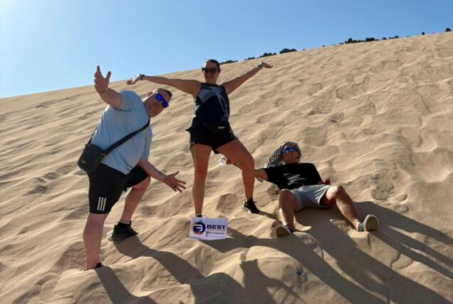 Your desert adventure starts with an exhilarating quad bike ride across the soft sand dunes. With the wind in your hair and the golden sun overhead, you’ll race through the raw beauty of the landscape, experiencing a rush of freedom like no other.