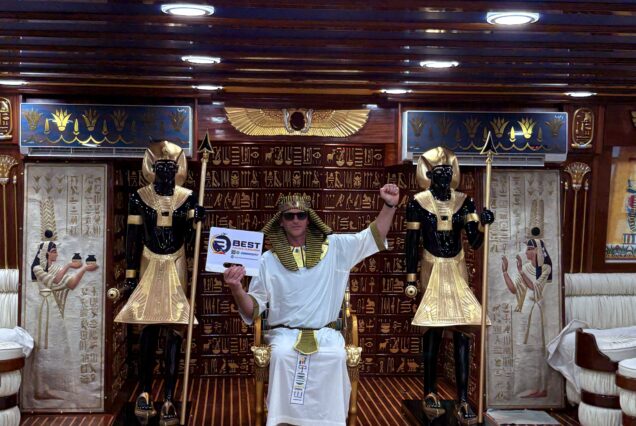 Dress up in authentic replica costumes as an ancient Egyptian king or queen while seated on Tutankhamun’s throne and capture great photos. After, cruise to the best snorkeling spot and spend 45 minutes in the water, getting closer to the marine life under the expert care of fully qualified guides.