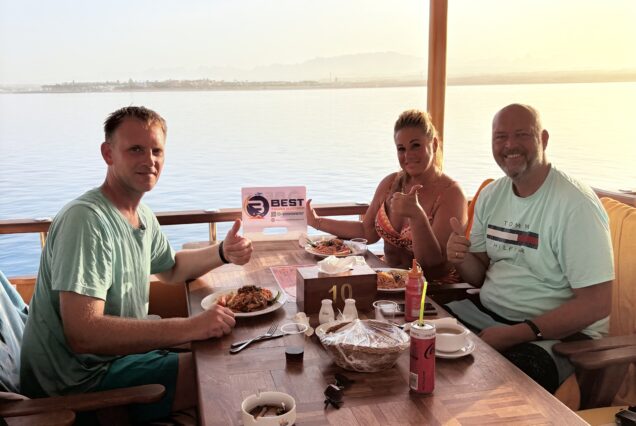 Zeer leuke beleving foto’s in Egyptische kleding onderwater kijken en snorkelen.
