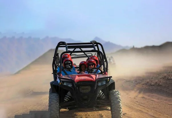 A buggy safari in Egypt gives you a mix of speed, safety, and comfort. It’s especially popular in Marsa Alam’s sandy valleys and Hurghada’s wide desert trails. Buggies can also handle steeper dunes better than standard quads.